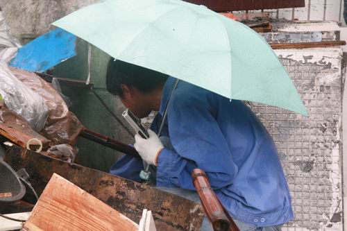 又抄了幾十只表,小吳來(lái)到一個(gè)木板、破家具等雜物的角落,把一張破竹椅拿開(kāi),又把一塊木板移開(kāi),然后蹲下身去撥弄起來(lái),過(guò)了一會(huì)離開(kāi)了。我說(shuō),你在找什么?他說(shuō),這下面有只表要抄,這戶人家把裝水表的位置作堆積場(chǎng)所了,不好抄。