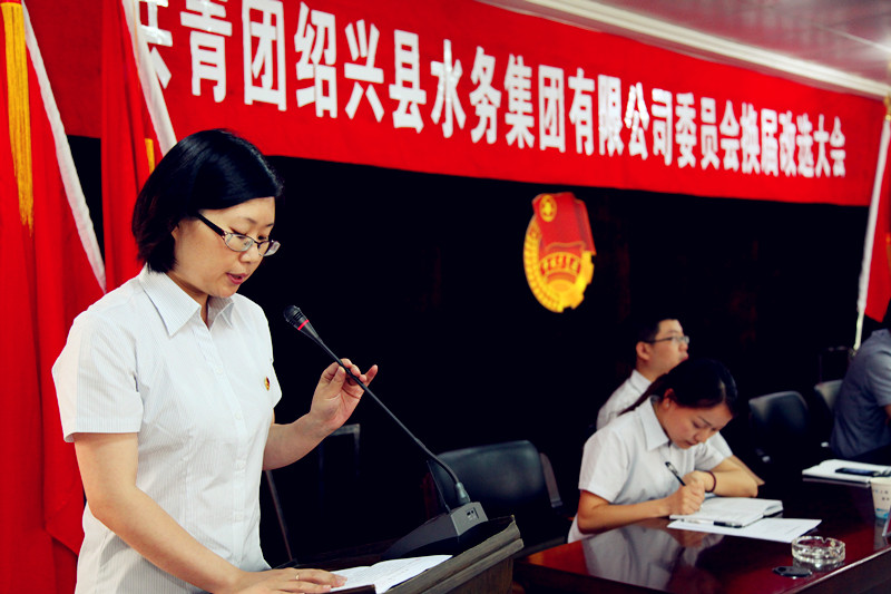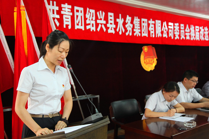 會議在雄壯的國歌聲中開幕,集團第二屆團委負責人林素菁在會上作《務實創新、與時俱進,為加快社會責任型企業建設譜寫新的青春篇章》為主題的團委工作報告。報告指出自第二屆團委換屆改選以來,集團團委緊緊圍繞集團黨委的工作要求和指導,堅持“服務企業、服務青年”的工作方針,全力實施“青年文明工程”、“青年崗位成才計劃”、“水務文化品牌建設”、“水務青年志愿者服務品牌塑造”等系列活動,全面加強團的建設,全力培養和造就青年人才,充分發揮生力軍和突擊隊的作用,為推進集團公司的健康穩定發展,做出了共青團應有的貢獻。五年來,集團團委先后獲得了“紹興市五四紅旗團委”、“紹興市先進團委”等榮譽稱號;成功創建省級青年文明號1個、市級青年文明號6個,縣級青年文明號12個;涌現出省級青年崗位能手1名,市級青年崗位能手2名,市級杰出青年崗位能手1名,水務志愿者服務隊被評為市、縣級志愿服務優秀集體。會議提出了下一階段集團共青團工作的主攻方向是:以科學發展觀為統領,圍繞集團中心工作,積極探索有時代特征、有水務特色、有青年特點的共青團工作新路子,不斷拓寬工作領域,創新團的工作機制,加強團的自身建設,團結帶領廣大團員青年為加快社會責任型企業建設而努力奮斗。