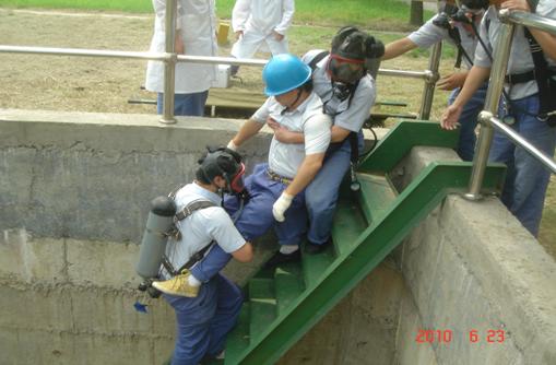舉行“有限空間作業(yè)暨污泥管爆管”應(yīng)急預(yù)案演習(xí)