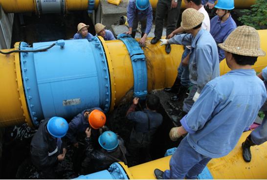 當時,工作人員正在現場巡視,實然發現市排DN800管道流量計后硬性伸縮節滲漏噴水,于是立即按照報告制度進行匯報,該公司立即啟動應急預案。搶修分兩路展開,一隊人員用應急水泵,將滲漏的污水打入生產系統中;另一隊人員對滲漏點進行檢查,確定是因硬性伸縮節的兩顆螺絲膨脹后崩斷造成爆管。在通知排水公司對進廠流量進行控制的同時,現場搶修指揮人員立即組織維修人員對硬性伸縮節進行更換。維修人員在采取相關安全措施后,冒著不斷噴出的污水,立刻進行拆裝螺栓作業。隨著水流一點點變小,漏點最終被徹底控制。