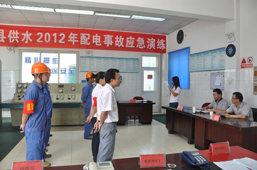 為全面深化安全生產(chǎn)月活動(dòng),提高部門職工對突發(fā)事故的分析與應(yīng)急處理能力,確保全縣供水系統(tǒng)安全可靠的運(yùn)行,6月29日,公司在鳳凰山泵站舉行2012年配電反事故應(yīng)急演練。