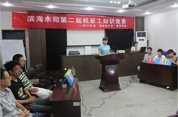 7月20日上午,濱海水司第二屆高配機泵工知識競賽在三樓會議室落下帷幕,經過激烈的角逐,迎陽閘取水泵房代表隊獲得優勝獎,送水泵房代表隊及新三江取水泵房代表隊獲得鼓勵獎。