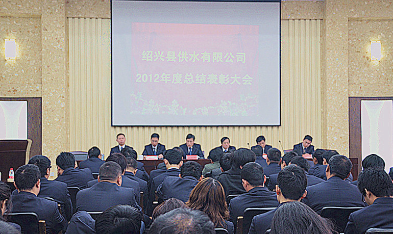 谷董事長在報(bào)告中指出,剛剛過去的2012年,公司緊緊圍繞“安全求實(shí)、管理求精、服務(wù)求新、行業(yè)求先”的總體思路,通過廣大干部職工共同努力,圓滿完成集團(tuán)下達(dá)的各項(xiàng)經(jīng)濟(jì)指標(biāo)和工作任務(wù),呈現(xiàn)出七大亮點(diǎn):一是全力為政府排解困難,王壇飲用水條件得到根本性改善;二是有效理順高層二次供水管理體制,接收接管工作取得重大突破;三是如期投運(yùn)區(qū)域分質(zhì)供水工程,小舜江供需矛盾有效緩解;四是成功創(chuàng)建城區(qū)現(xiàn)代化分公司,分公司管理有了新標(biāo)桿;五是強(qiáng)勢推進(jìn)GIS運(yùn)行管理,建設(shè)工作走在集團(tuán)系統(tǒng)前列;六是全面貫徹106項(xiàng)水質(zhì)新國標(biāo),水質(zhì)監(jiān)測能力又有新提高;七是管網(wǎng)運(yùn)行管理日益精細(xì),供水產(chǎn)銷差率保持行業(yè)領(lǐng)先。2012年,公司還取得多項(xiàng)榮譽(yù):成功創(chuàng)建成為全省供水行業(yè)第一家通過安全生產(chǎn)標(biāo)準(zhǔn)化國家二級標(biāo)準(zhǔn)驗(yàn)收的企業(yè)、順利取得管道工程專業(yè)承包三級資質(zhì)、紹興市質(zhì)量管理“四星級”企業(yè)、紹興市示范化數(shù)字檔案室、連續(xù)三年被評為“市級治安安全示范單位”; 公司黨總支順利創(chuàng)建成為紹興縣“創(chuàng)先爭優(yōu)”先進(jìn)基層黨組織。