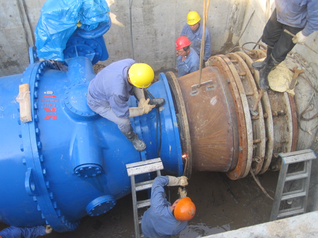 鳳凰山泵站原DN1400閥門(mén),因使用時(shí)間長(zhǎng),部分零部件損壞,導(dǎo)致電動(dòng)操控失靈,手動(dòng)關(guān)閉困難,安全隱患較大,經(jīng)公司領(lǐng)導(dǎo)研究決定,由安裝分公司負(fù)責(zé)對(duì)此處閥門(mén)進(jìn)行更換,并安裝調(diào)流閥。該調(diào)流閥的成功安裝,將方便小舜江一期總管水壓及流量的調(diào)控,為應(yīng)對(duì)今年高峰供水做好了準(zhǔn)備工作。