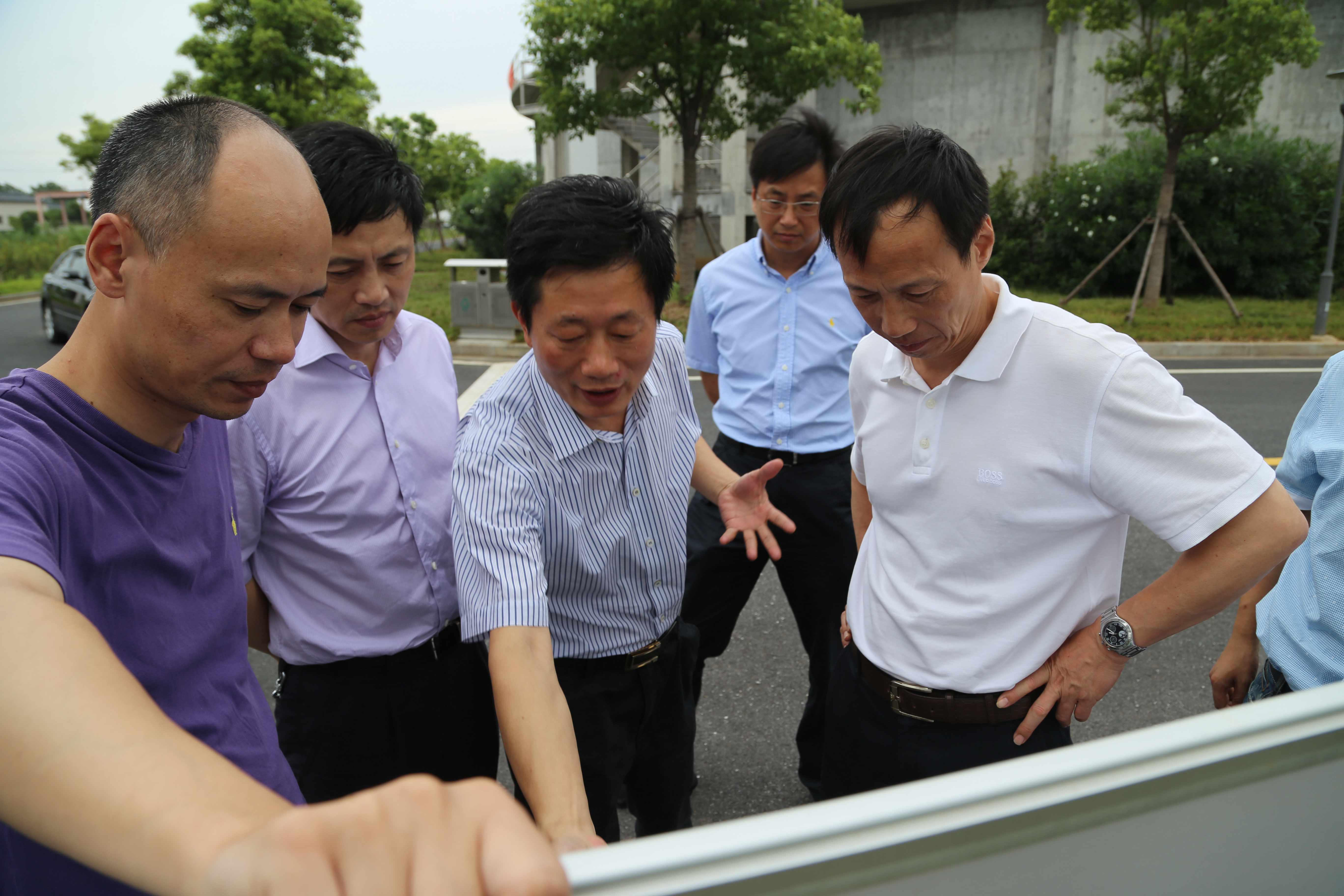 724,浙江省“五水共治”督查組來到江濱水處理公司就濱海印染產業集聚水務配套工程建設情況進行調研督導,區委常委、副區長丁生產、濱海管委會、區環保局相關領導及集團副總經理馮梁峰等陪同。