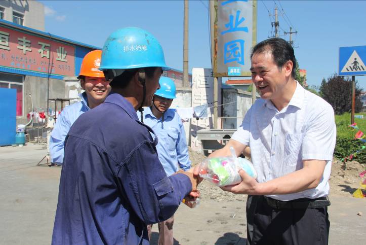 7月23日,集團公司董事長倪阿泉來到養(yǎng)護分公司管道改造施工現(xiàn)場以及營業(yè)監(jiān)察部計量、采樣維修班,看望、慰問奮戰(zhàn)在高溫一線的廣大職工,為他們送去了消暑飲料及毛巾等防暑用品,給他們帶去絲絲“清涼”。 倪董事長與職工一一握手,向他們付出的辛勤勞動表示衷心感謝,并囑咐現(xiàn)場管理人員要切實落實好高溫天氣的防范措施,科學安排工作時間,做好防暑降溫工作,確保員工身心健康。