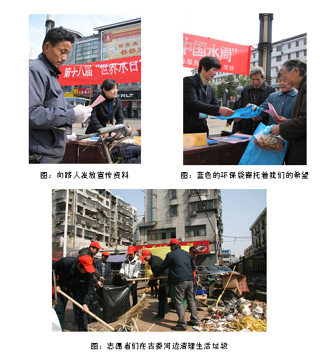 3月25日上午,在柯橋綜合市場門口接受現場業務受理(新裝用戶接水、工業污水入網、報漏報修等);用戶的咨詢、投訴、建議;發放企業概況、業務辦理流程、節水常識及環保袋,共發放各類宣傳資料450余份。下午,組織40多名青年志愿者到古婁河進行“關注水質,珍愛‘生命之源’”的青年志愿活動。志愿者們分工明確,一組清除大街上的垃圾、清理垃圾堆,打撈河面漂浮物;另一組則是向市民發放由縣水務集團團委印發的“節約用水倡議書”和節約用水、保護水資源的宣傳材料,志愿者們邊講解節約用水的小常識,邊宣傳和號召大家“從每一件小事做起,節約每一滴水”、“關好水龍頭,杜絕水資源浪費”。此次活動共向群眾發放節水常識宣傳資料、節水倡議書等200余份,積極增強群眾節水及環保意識。