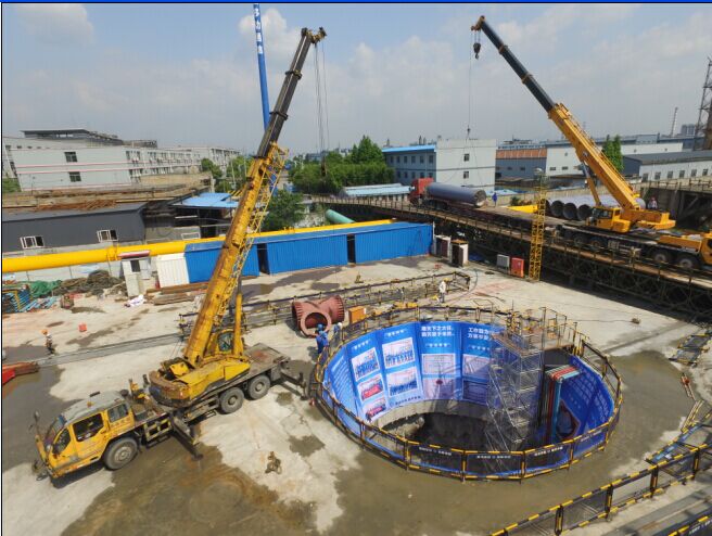 紹興城市北部區域供水保障工程是紹興市三區融合的重點建設項目,共分袍江段、濱海工業區段、濱海新城江濱區段三部分,其中,公司主要負責濱海工業區段,涉及建設DN1200-1600供水管線9公里,投資概算約8100萬元。頂管施工則是整個工程中最重要部分,該頂管直徑1.6米,總長1.6公里,此類規模的小口徑大長度過江頂管在全國尚屬首例,難度極大,對工程的設計、施工技術、管材質量都有著極高要求。在建設過程中,施工人員要通過打30米深的工作井,采用“頂進法”施工,將頂管下穿曹娥江。