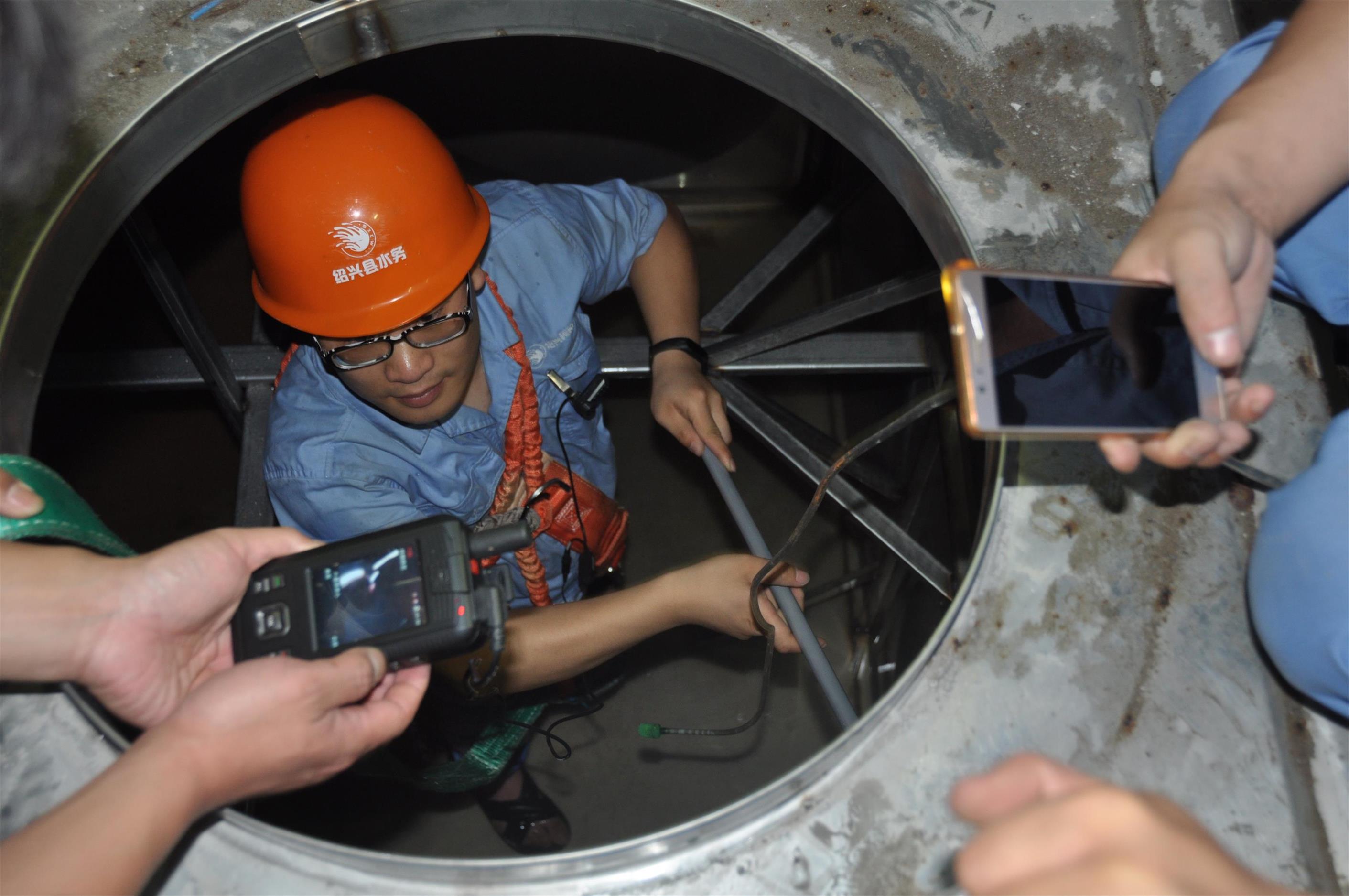 6月20日上午,位于和諧家園小區(qū)6幢地下一樓的水箱房內,供水公司工作人員正在對箱式無負壓設備水箱進行清洗。